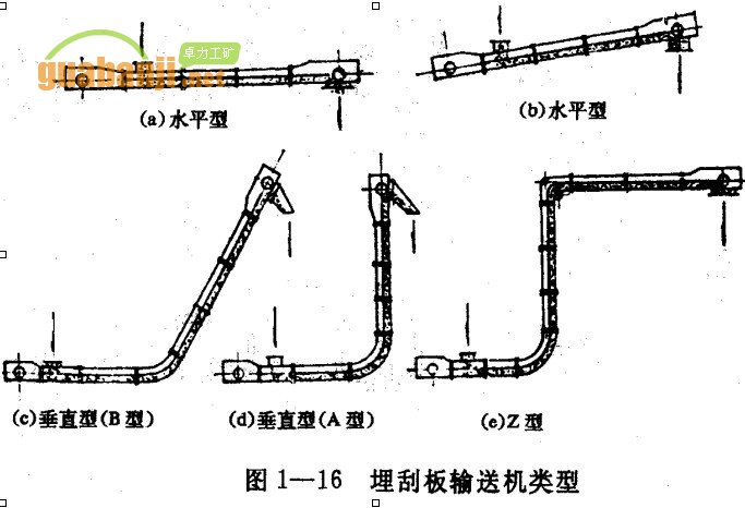 注意,膠帶輸送機(jī) 和斗提機(jī)的牽引構(gòu)件是通過摩擦實(shí)現(xiàn)驅(qū)動(dòng),而刮板輸送機(jī)的鏈條是通過齒嚙合實(shí) 現(xiàn)驅(qū)動(dòng)。