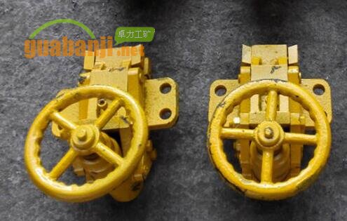 阻鏈器用來(lái)在緊鏈過(guò)程中卡阻輸送機(jī)上的刮板鏈,使鏈條張緊。將阻鏈器放在過(guò)渡槽的預(yù)設(shè)孔中,點(diǎn)反車(chē),使上鏈緩緩運(yùn)行至阻鏈器時(shí)受到機(jī)械阻力而使刮板鏈張緊;鏈條接好后,逆時(shí)針轉(zhuǎn)動(dòng)手輪松開(kāi)緊鏈器,接通動(dòng)力源,點(diǎn)正車(chē)后,撤去阻鏈器。